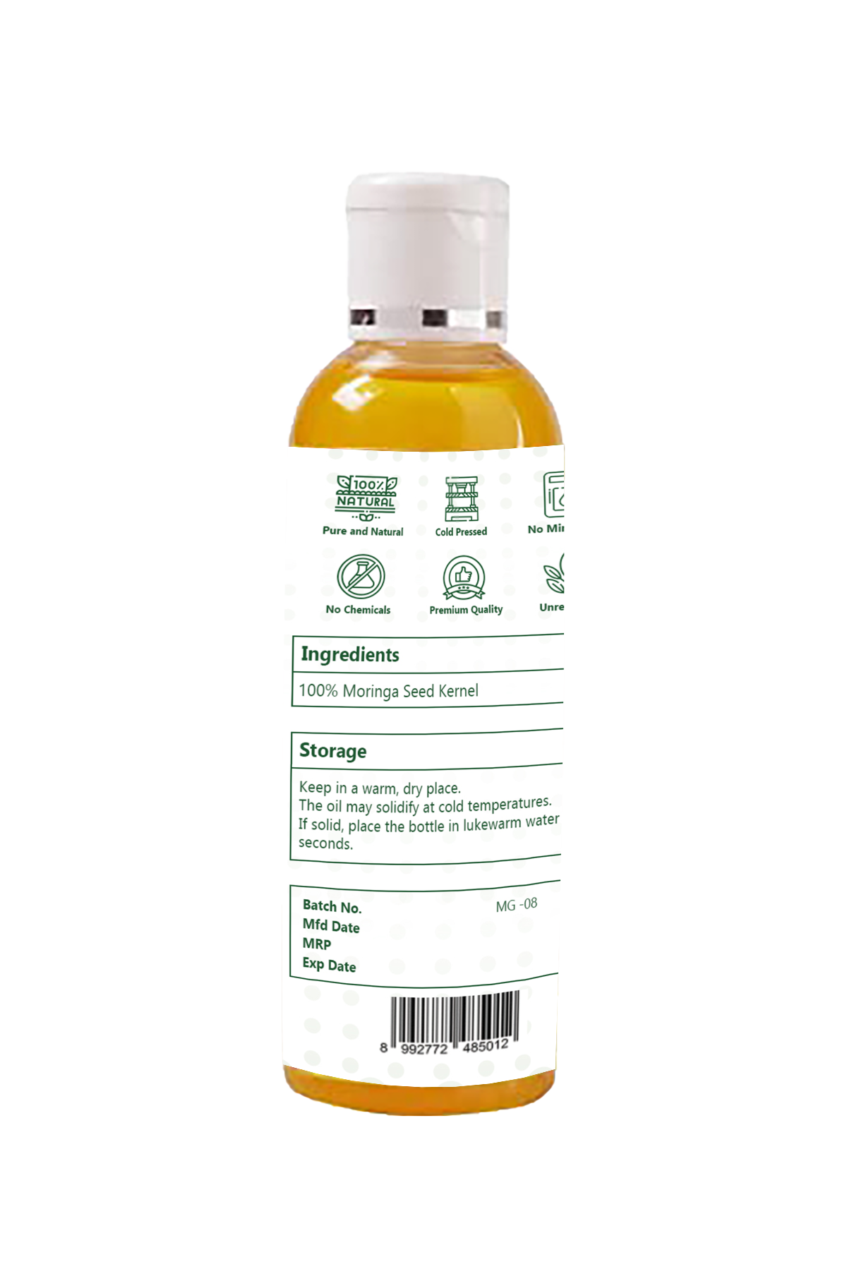Moringa Seed Oil (100 ml)- 100% Pure & Natural, Rich in Antioxidants, Nourishing for Skin, Hair and Scalp, Moisturizing, Anti Ageing Effects